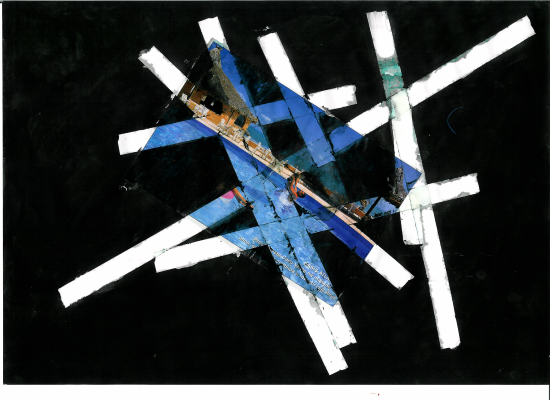 Colar uma imagem da revista numa folha. Dispor fita-cola aleatoriamente em cima da folha.